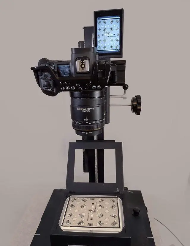 With the majority of film being scanned into digital images these days, it's important to have a tool that can help ensure the best possible results. Vlads Test Target is the essential tool for achieving sharp and accurate results in film digitalization aka camera scanning. This specialized test target helps align your camera properly relative to the slide or negative original, ensures correct framing and reproduction ratio, resulting in maximum sharpness from edge to edge. Target helps assess the resolution of the any given lens and compare different lenses. With careful preparation and the use of Vlads Test Target, photographers can digitize their film with confidence, knowing that the resulting images will be true to the original film.