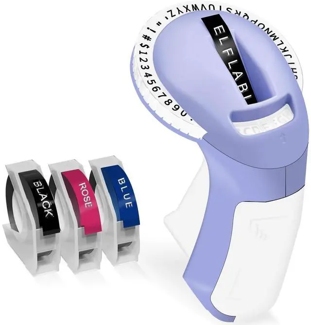 Elfatech Embossing Label Maker Machine with 3 Tapes, 3D Omega S Vintage 3D Embosser, Old School Handheld Label Printer, Portable Retro Manual Embossed Labeler for Home Office School DIY, Purple