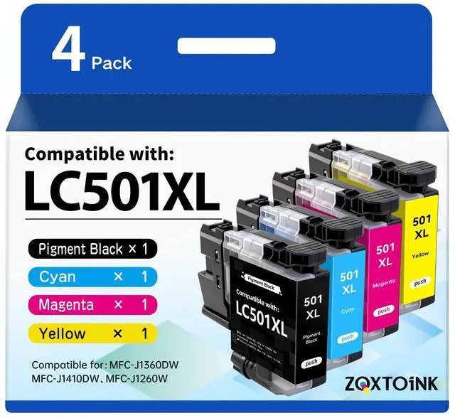Package Content: LC501XL ink for Brother LC501XL ink cartridges include 1x LC501XL Black, 1x LC501XL Cyan, 1x LC501XL Magenta and 1x LC501XL Yellow (Total 4 Pack) ^^