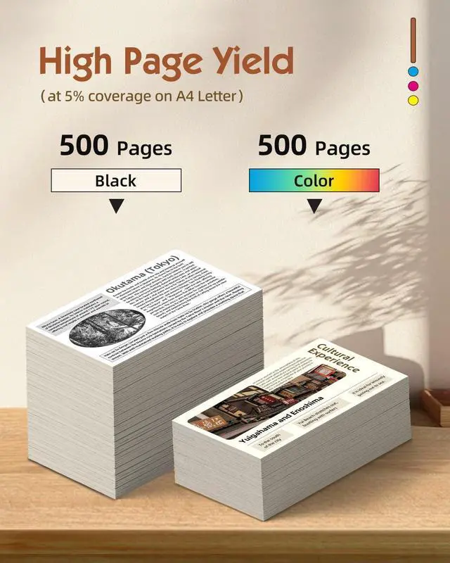 High Page Yield: Up to 500 pages per LC501XL Black Ink Cartridge, 500 pages per LC501XL Color Ink Cartridgeat 5% coverage of A4 paper ^^