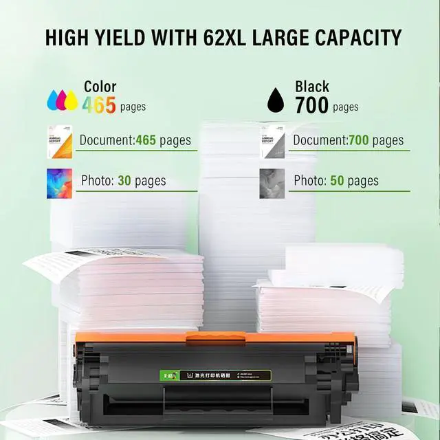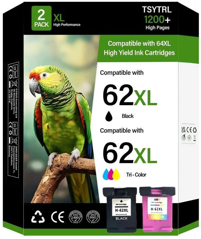 HP 62 Original Quality & 50%-Cost SavingSave 50% with Tsytrl's remanufactured HP 62XL ink cartridge combo pack! Delivering identical print quality to HP original ink cartridges at half the cost, our printer ink is perfect for home offices, students, and small businesses looking for affordable printing solutions. ^^ 62XL Large Capacity to Print More PagesExperience exceptional printing capacity with up to 700 pages from black and 465 pages from color ink cartridges (5% coverage on A4). Our high-capacity HP 62XL ink cartridges deliver reliable performance for all your printing needs. ^^ Wide Compatibility with HP PrintersRemanufactured 62XL ink cartridges combo pack replacement for HP ENVY 5540, 5541, 5542, 5543, 5544, 5545, 5546, 5547, 5548, 5549, 5640, 5642, 5643, 5644, 5646, 5660, 5661, 5663, 5664, 5665, 7640, 7643, 7644, 7645, 8000, 8005, OfficeJet Mobile 200, 250, 258, OfficeJet 5740, 5741, 5742, 5743, 5744, 5745, 5746, 8040, 8045.