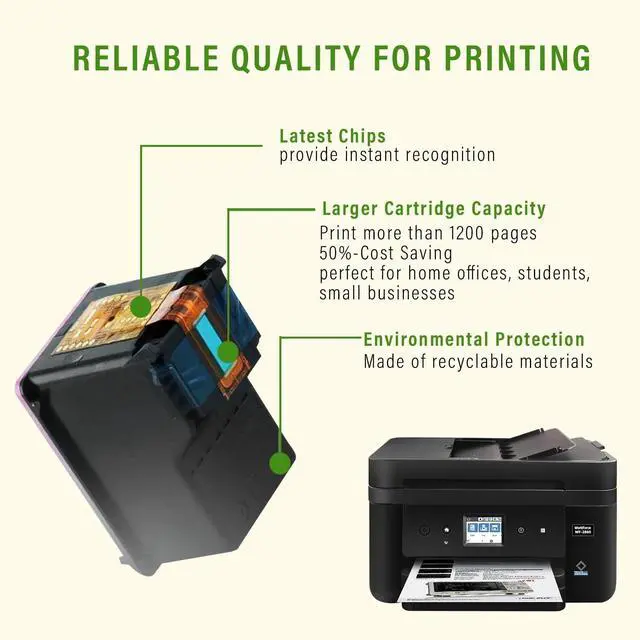 ^^ Printing Control with Smart ChipFeaturing advanced chip technology, our remanufactured HP 62XL black and color ink cartridges provide instant recognition and produce vibrant photos, crisp documents, and clear text. Fully compatible with HP Envy Photo and OfficeJet series printers. ^^ Sealed Packaging & Usage TipsEach HP 62XL black & color combo pack comes in high-quality, durable packaging that ensures product integrity during shipping and storage. If they can't work at first, here are some instructions for you: (1) Please make sure the black cover had been removed before you installing the ink. (2) Please take soft tissue paper with ethyl (clean water is also fine) to wipe print head of ink-jet. (3) Please take an eraser/soft tissue paper to wipe the chips and the contact point of both ink-jet and the printer to solve bad-connection problem.