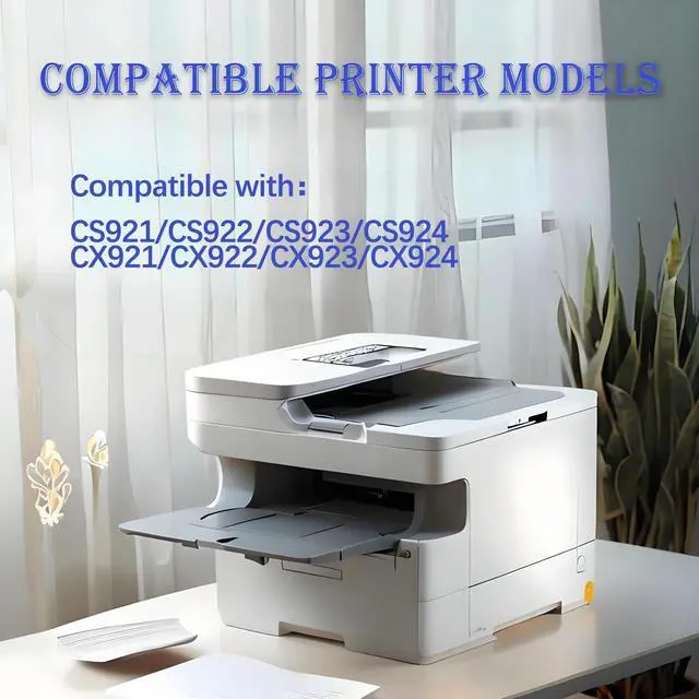Compatible ModelsCompatible with Lexmark CS921/CS922/CS923/CS924 CX921/CX922/CX923/CX924 printers (replacement for 76C00Y0) ^^ High Page YieldToner Cartridges with a yield of 11, 500 pages. (Letter/A4 at 5% coverage) ^^ Package Contents1-pack CS921 CX921 toner cartridges Compatible with Lexmark CS921/CS922/CS923/CS924 CX921/CX922/CX923/CX924 with intelligent tracking chips. Factory-sealed packaging ^^ Quality Assurance24-month after-sales support is provided for the CS921 CX921 toner cartridges Compatible with Lexmark CS921/CS922/CS923/CS924 CX921/CX922/CX923/CX924 toner cartridges ^^ With ChipCS921 CX921 toner cartridges Replacement toner cartridges is already equipped WITH CHIP Compatible with Lexmark CS921/CS922/CS923/CS924 CX921/CX922/CX923/CX924. Pre-installed chips ensure seamless printer recognition - no chip transfer required. No damage to the drum and printer