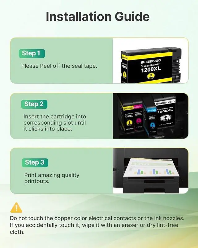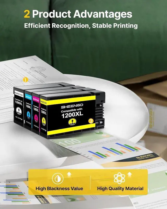 Yields More Than 1200: SHEENGO 1200XL yields 4400 Pages 1.2 times more than 1200 Ink, Each 1200 xl black ink cartridges can produce up to 1200 pages, while the 1200xl ink cartridges color pack offer 1080 pages each, based on 5% coverage. ^^ Compatible for