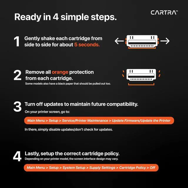 Premium replacement for 410X toner cartridges, designed for seamless compatibility and consistent performance. Enjoy reliable printing with sharp, bold colorsa perfect alternative to the original ink cartridges for color printers ^^ Ensures high compatibility with laser jet printer Enterprise models MFP M377dw, M477fdn, M477fdw, M477fnw, M452 series, Enterprise Flow MFP M631h, M632z, M633z series, ensuring flawless integration of an laser printers for home use ^^ With Chip & Toner Monitoring Pre-installed smart chips eliminate the need to transfer OEM chips. Real-time 410x tracking on your printers ensures you're always stocked with essential office supplies.