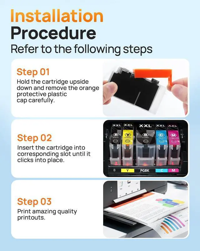 ^^ Excellent Performance: Compatible canon 280 281 ink cartridges for canon tr8620a ink cartridges features high-quality smart chips designed for stability and reliability. These smart chips precisely monitor ink levels, accurately display remaining ink, and support seamless plug-and-play functionalityensuring a smooth and hassle-free printing experience. ^^ Customer Support for canon 280 281 ink cartridges: If you encounter any issues while using ink cartridge combo pack, please don't hesitate to contact us. We offer a 24-month product guarantee and technical support