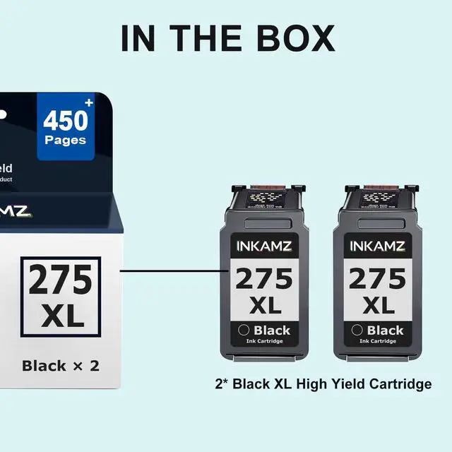 Page Yield: 450 pages per black 275 XL ink cartridge (at 5% coverage), 3X Page Yield Compared to the 275 Standard Version.