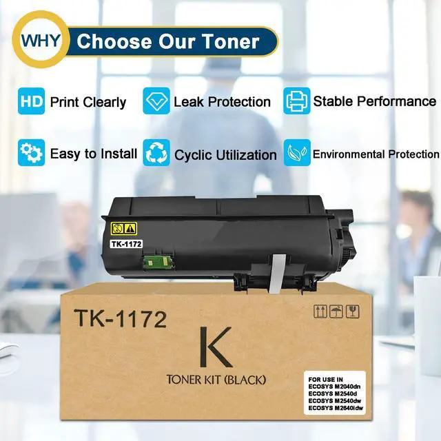 2-Pack TK-1172 Compatible for Kyocera TK1172 Toner Cartridge for Kyocera ECOSYS M2540dw M2540dn M2040dn M2640idw Printers 7, 500 Pages Black High Yield Toner Kit