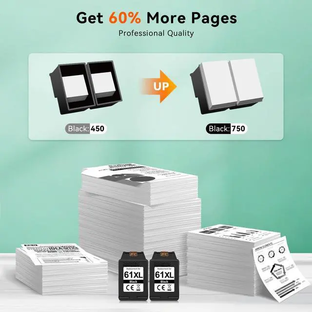 High Page Yield: 750 Pages per 61XL ink cartridges