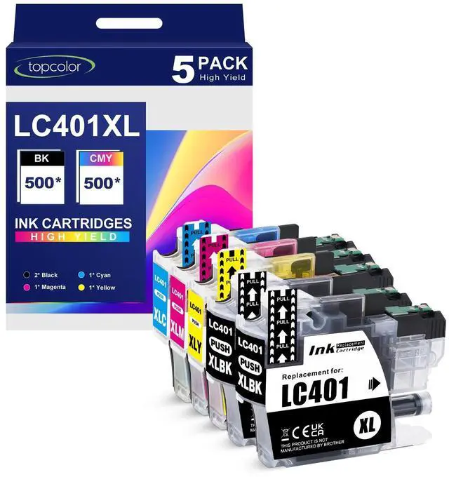 PAGE YIELD: Compatible for lc 401xl ink cartridges print up to 500 pages per cartridge (at 5% coverage on A4 paper) ^^ Compatible with lc 401 ink cartridge, it adopts the latest chip to ensures quick recognition. Our lc-401 ink cartridges can provide smooth and reliable printing result for crisp, clear text and bright, vivid images