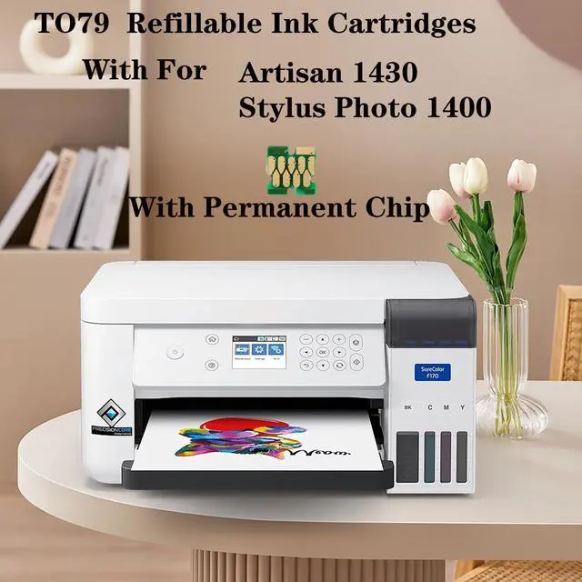 And heres the best part: these cartridges come with Permanent chip. No need to hunt down extra chipsjust pop em in and start refilling! ^^ Great Compatibility Our T079 ink cartridge is a perfect match for the Artisan 1430 Inkjet Printer and the Stylus Photo 1400 Inkjet Printer. It works like a charm, giving you smooth and reliable printing every time! ^^ Our ink cartridges come with permanent chips that are super handy. These chips display the ink level right away, so you always know when it's time to refill.