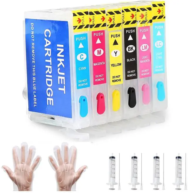 Empty Ink Cartridge Kit: Get 6 empty ink cartridgeseach color-coded so you wont mix em up. The set also includes 6 ink injectors and disposable gloves, making refilling a piece of cake.