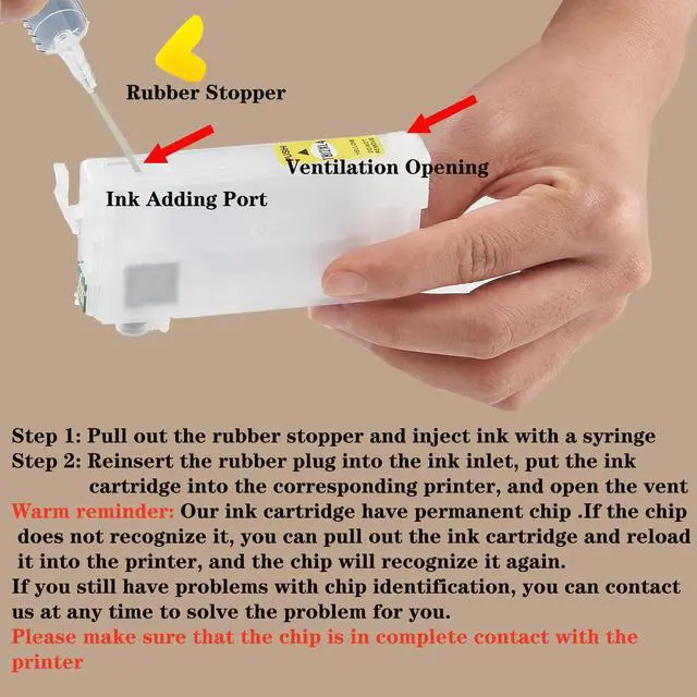 And here's the cool part: once the chip data is used up, we've got a trick. You can shield the chip data information, and boom! The chip starts working again like new. It's a great way to keep your printing going without having to constantly replace the chip. ^^ Easy Ink RefillsOur T079 sublimation ink cartridge features a white, transparent shell. This makes it super easy to see exactly how much ink is left and track your daily usage at a glance. And when its time to refill? Just grab the included ink refill toolits a no - brainer, getting the job done quickly and hassle - free! ^^ If the printer fails to recognize the chip initially, there's no need to panic. The simple solution is to take out the ink cartridge and put it back in. This often triggers the printer to recognize the chip all over again. When you're reinstalling the cartridge, make sure that the chip on the cartridge is fully and securely attached to the printer. And if, after trying that, the printer still won't recognize the chip, don't be too quick to send it back for a return.