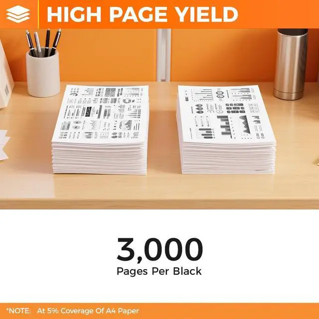 High Yield: Up to 3, 000 pages black per cartridge at 5% coverage (Letter/A4) ^^