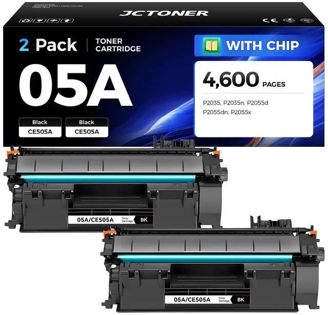 Item Name: JCTONER Compatible Replacement for 05A CE505A black toner cartridge 2 set (with chip).