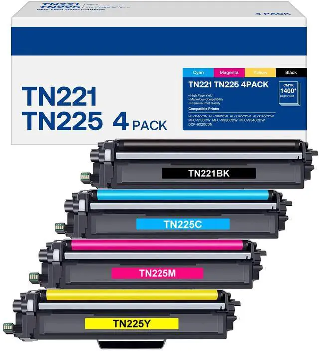Printer Compatibility: TN221 TN225 Toner Cartridges High Yield Suitable for Brother HL-3140CW, 3142CW, 3150CDW, 3152CDW, 3170CDW, 3172CDW, MFC-9130CW, 9140CDN, 9330CDW, 9340CDW, DCP-9020CDW ^^