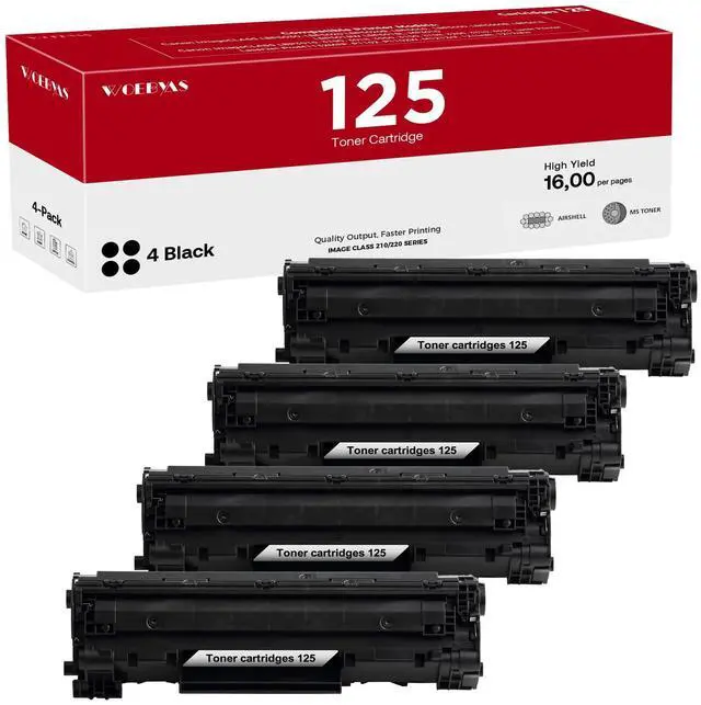 • Package Contents: WOEBYAS 4 black 125 toner cartridges compatible for Canon 125 CRG125 toner cartridges
