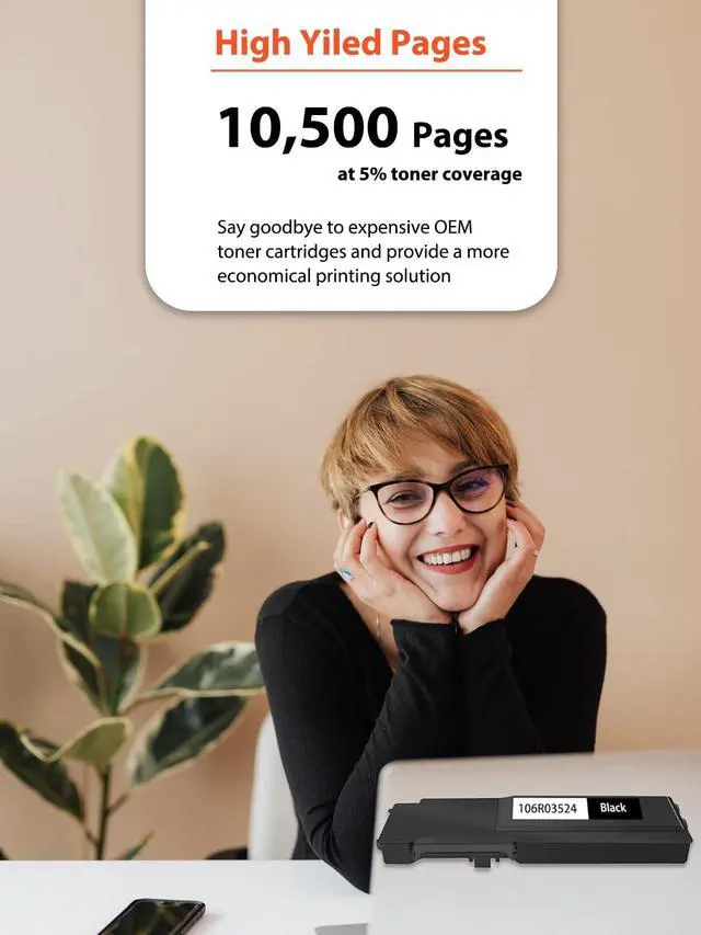 High Page Yiled: Up to 10, 500 pages per compatible 106R03524 toner cartridge at 5% coverage Black on Letter/A4 ^^