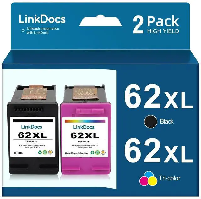 LinkDocs Remanufactured 62XL 62 Ink Cartridge replacement for HP 62XL 62 to use with Envy 5540 5640 5660 7644 7645 OfficeJet 5740 8040 OfficeJet 200 250 Series Printer (1 Black, 1 Tri-Color, 2-Pack)