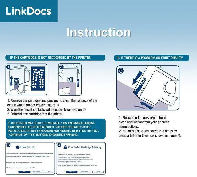 • Compatible with HP Part No.: 62, 62xl Bk and color, C2P04AN, C2P05AN, C2P06AN, C2P07AN