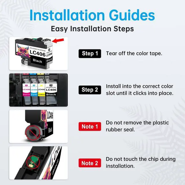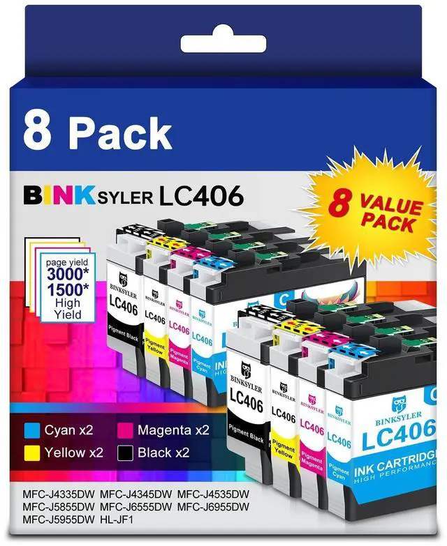 Features: Lastest upgraded chip ensures high compatibility with brother printer; Easy to install; High-quality lc406 ink cartridges provide rich black and vivid color with consistency, high saturation and resolution.