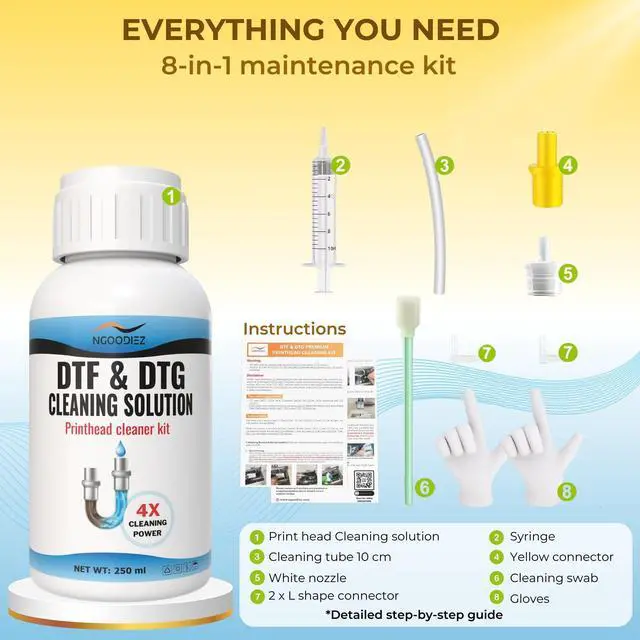 ECO-FRIENDLY & PRINTHEAD-SAFE FORMULA: Our non-corrosive, environmentally friendly cleaning fluid contains active enzymes that dissolve ink residue without damaging sensitive printhead components. Strong enough to clear tough clogs, gentle enough for daily maintenance. Made by DTF professionals who understand your printing business needs.