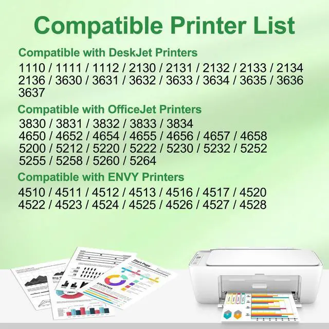 Series: 3830 3831 3832 3833 3834 3836 4650 4655 4652 4654 4656 4657 4658 5255 5258 5222 5212 5252 5220 5230 5232 5260 5264 Printer Ink Cartridges. ^^ Compatible for HP Envy 4500