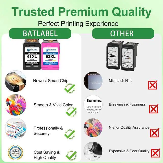 Highly Premium: BSTLABEL 63XL for hp 63 Ink cartridge combo pack are equipped with the latest upgrade intelligent chips. Remanufactured ink cartridge replacement for hp 63XL has been awarded ISO9001 certification, and we have independent laboratories periodically verify product quality to ensure a smooth user experience.