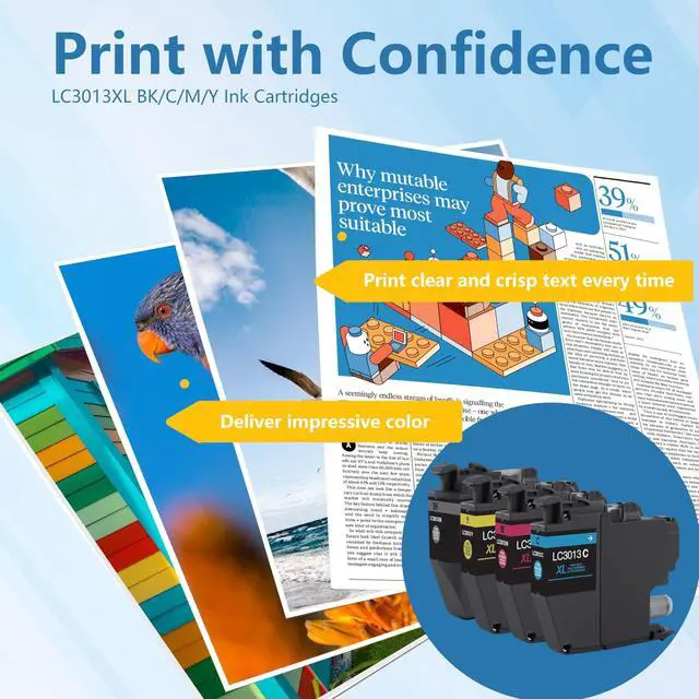 Performance: LC3013XL ink cartridges Print crisp and vibrant colors and rich black, bring you comfortable printing life