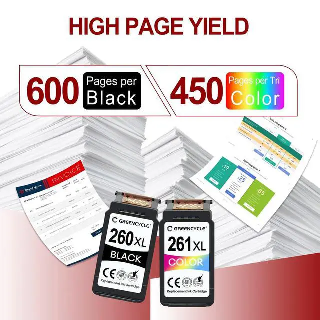 Page Yield: 600 pages per 260XL black cartridge and 450 pages per 261XL color cartridge at 5% coverage. (Letter/A4) ^^ Compatible for