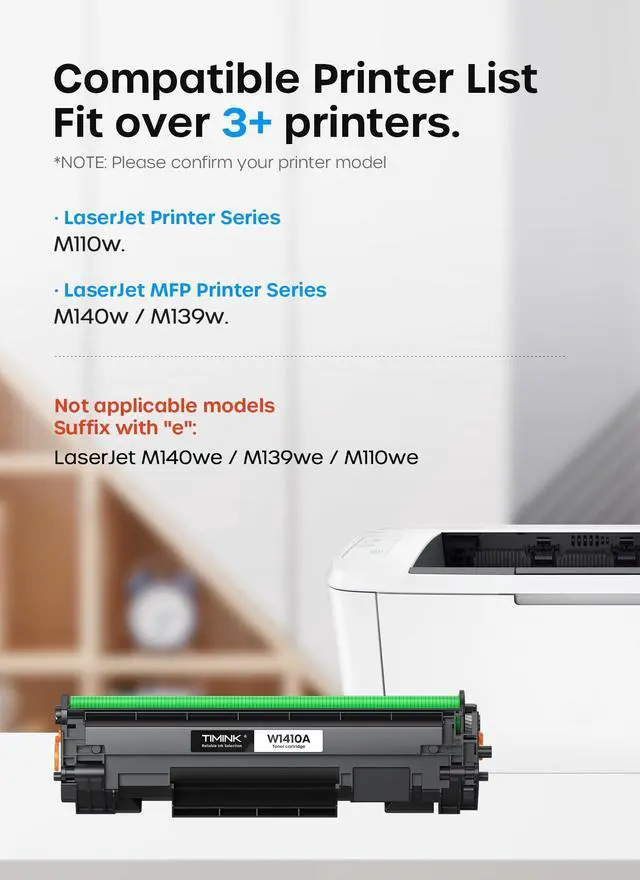 ^^ Broad Compatibility: The W1410A toner cartridge compatible with HP LaserJet Pro M110w, MFP M139w, M140w.