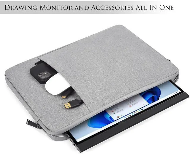 ASIN: B0FDG7VGC2. ) ^^ Compatible with Most 18.5 Inch Portable MonitorsThe portable monitor case compatible with Most Large 18.5" Portable Display Monitors. ^^ Water Resistant & Slim LightweightThe 18.5 inch monitor case bag is made of high-quality waterproof Canvas fabric, which obstructs water and vapor effectively. Don't worry about your monitor and accessories splashing water or rain. Super slim and lightweight, it can easily be transported inside another bag, backpack, or briefcase. ^^ Extra Pocket & Smoothly ZipperExtra pocket in front provides enough space to keep pens, charging cables organized, and other accessories. The zipper glides smoothly and convenient access to your monitors. ^^ Shockproof Soft LiningEspecially soft and anti-static, the portable monitor case of the soft lining can effectively absorb impacts and reduce damages caused by accidental bumping & scratches.