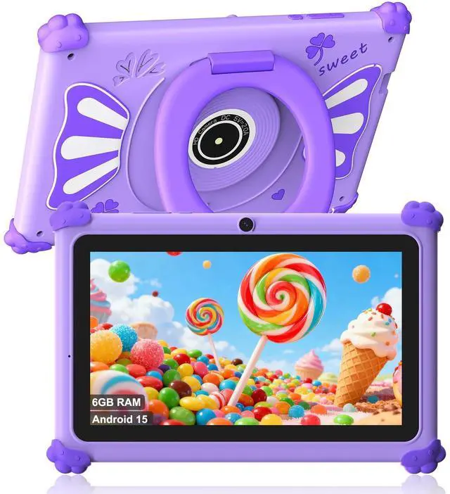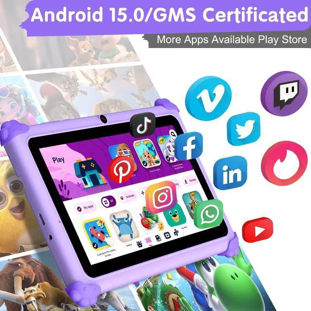 This includes: setting daily usage limits, managing app permissions, and filtering inappropriate content and appsallowing your child to freely explore the digital world within safe boundaries. To activate parental controls for the first time, enter the parent's birth year (only adults can set this up), then create a user password to enable the feature. ^^ [Equipped with Kids Space] Relying on the advanced Android 15.0 system, the tablet kids integrates the Kids Space platform designed specifically for kids! It offers a large selection of apps, games, books, and videos curated by educational experts. The content is intelligently recommended based on the child's interests and age, continuously stimulating their curiosity and creativity, making learning fun. (More exciting apps can be downloaded from the Play Store). ^^ [Designed Specifically for Kids] Considering children's naturally active and playful nature, the childrens tablet features shock-absorbing silicone bumpers around its edges to effectively cushion impacts from accidental drops. tablet para ninos adjustable kickstand on the back allows hands-free viewing at any angle. This truly makes it an excellent gift that can accompany children as they grow up happily.