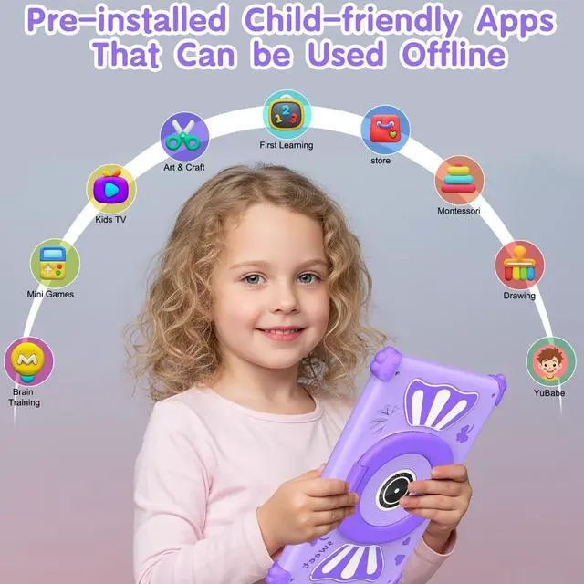 • [Preloaded with a Wide Range of Children's Apps], this tablet for kids comes with the Yubabe system designed specifically for children! It features a vast collection of curated educational games and introductory courses, offering rich and diverse content. Even better, most content supports offline operation. During long trips or in environments without internet access,kid tablet built-in long-lasting battery ensures fun learning and play anytime, anywhere.