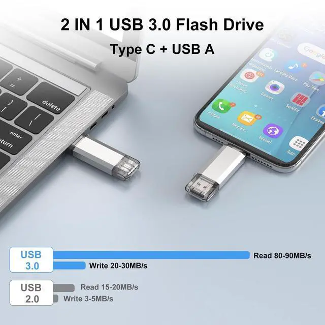 Use: Plug and play, just plug into the type-C or USB port of your smartphones, computer or other devices with OTG function; Compact size and light weight is easy to carry around; There is a loop on the side of the thumb drive for you to attach to keychain and avoids it from lost ^^ Ultra Durability and