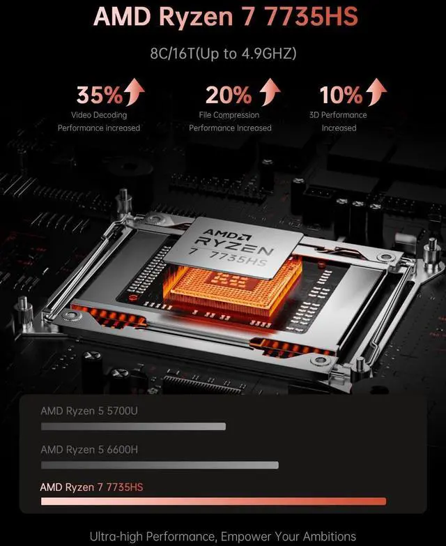 ENGINEERED FOR SPEEDThe KAIGERR 2025 RX16 laptop is equipped with the powerful AMD Ryzen 7 7735HS processor (8C/16T, up to 4.75GH z), delivering superior performance and responsiveness. This upgraded hardware ensures a smooth experience, fast loading times, and high-quality visuals. It provides an immersive, lag-free experience. Its performance is far moere than 30% better than AMD R7 5700U/5800U/5825U/6600HX. ^^ 16" High-Definition IPS ScreenWith its wide color gamut and high refresh rate, this laptop delivers smoother visuals and sharper detail, offering a more vivid and accurate representation than standard displays.