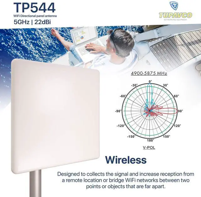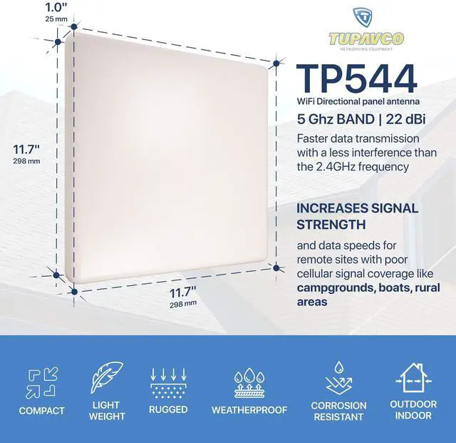[TP544] 22dBi Panel Antenna / 5 Ghz / High-Gain / Long-Range / Outdoor / Directional / N-Female connector ^^ [WIRELESS] designed to collects the signal and increase reception from a remote location or bridge WiFi networks between two points or objects that are far apart ^^ [5 Ghz BAND] faster data transmission with a less interference than the lower frequencies bands ^^ [DIRECTIONAL] focus the signal in one direction to increase reception leading to greater gain figures. ^^ [OUTDOOR] compact, light-weight, rugged weatherproof housing and corrosion-resistant materials for outside pole mount (mounting hardware included; mounting pole not included).