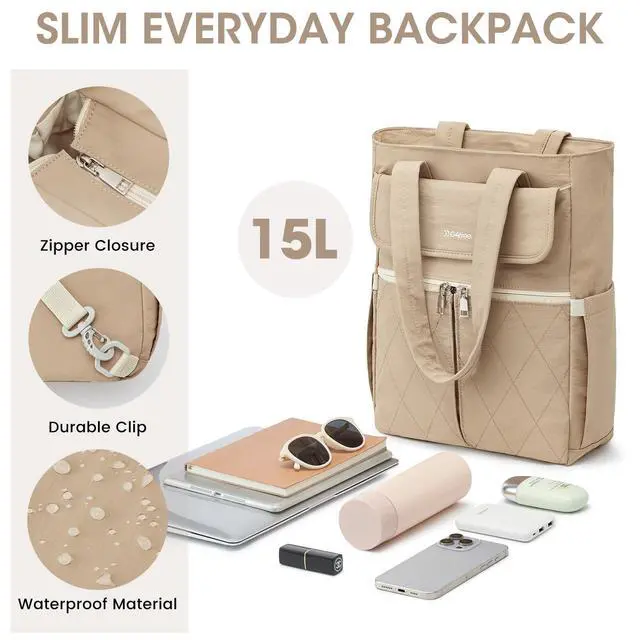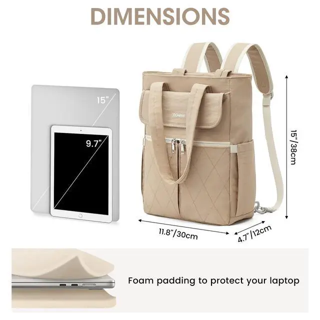 Zippered main compartment with a padded 15" laptop sleeve, an interior zipper pocket, and two slots. Also, it comes with a mini pouch. ^^ A Go-to Pack. The 15L capacity is ample to hold your daily essentials without the bulk. The perfect size is great for everyday commuting. ^^ Easy to converse. This versatile totepack can be transformed from a tote to a backpack easily, allowing for easy changes in different commute options.