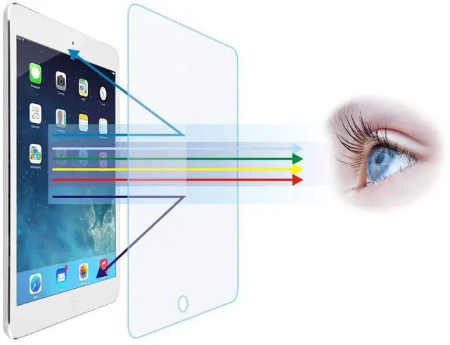 Anti Blue Light Screen Protector Applicable models: iPad 10.2". With the wish of everyone have a pair of perfect sight and leave from digital eye strain, Eye care guard screen protector make it possible to enjoy playing with electronic devices and healthy life. What is Blue Light? Research shows that blue light mostly exists in the rays of light emitted from electronic device displays, such as mobile phones, computers, vidio games and so on. It is emitted from LED screens from devices such as mobile phones, It contains a high-energy blue light of 450-470nm, which can go straight to the yellow spot at the base of the retina, causing serious damage to the eyes. Reports around the world have proven the blue light symptoms such as prolonged use of electronic device displays will cause: 1. Vision drop or loss. 2. Eyes fatigue, dry, tingling and other phenomena. 3. Visual fatigue aggravates the lesion of macular region. 4. The night's screen disturbs sleep. What is UV? Devices with LED screens release a form of invisible UV, which can make your skin dry, cause the melanin precipitation on your face. Why should you choose an Entwth Screen Protector? Tempered Glass Guard Screen Protector blocks 90% of the harmful blue light ranging from 380nm-420nm, helps to reduce eye fatigue and the possibilities of the likely symptoms caused by blue light. Promote healthy melation levels for better sleep. Protect our eyes perfectly. The also blocks 98% UV blockage 310nm-380nm, It can protect your skin and prevent from dry skin, Chloasma, and freckle caused by ultraviolet reflection. If it is pasted on a white iPad, it will be a bit yellow. The blue light film will block the blue light in the spectrum, and the white part of the iPad will become a warm color. If it will affect the appearance, it will feel that nothing is perfect in the world.