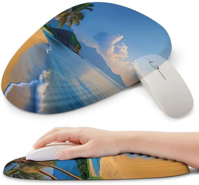 ORIENWEEDA Ergonomic Mouse Pad with Wrist Support, Memory Foam Wrist Rest for Pain Relief & Carpal Tunnel, Non-Slip Base for Office, Computer, PC, Laptop (12x8x1.2inch, Yellow Beach)