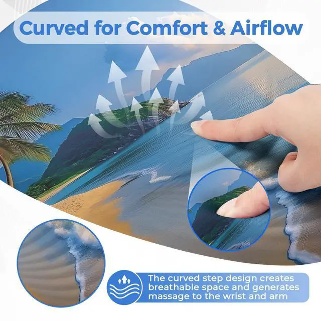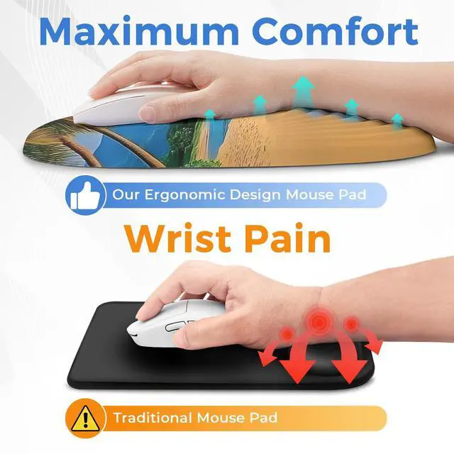 • [ERGONOMIC WRIST PAIN RELIEF] Say goodbye to wrist strain! The mouse pad is geometrically designed to perfectly cradle your wrist, promoting a neutral hand position. This significantly reduces pressure on the carpal tunnel and surrounding muscles, providing effective relief during long hours of work or gaming, unlike traditional flat mouse pads.