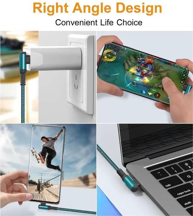 USB-C Right Angle Design]: This right angle type c charging cable fast charge with an innovative 90 degrees " L " design. It's user-friendly design more convenient and comfortable for playing games, watching videos, reading e-books when you charging. ^^ [Last 10X Stronger and