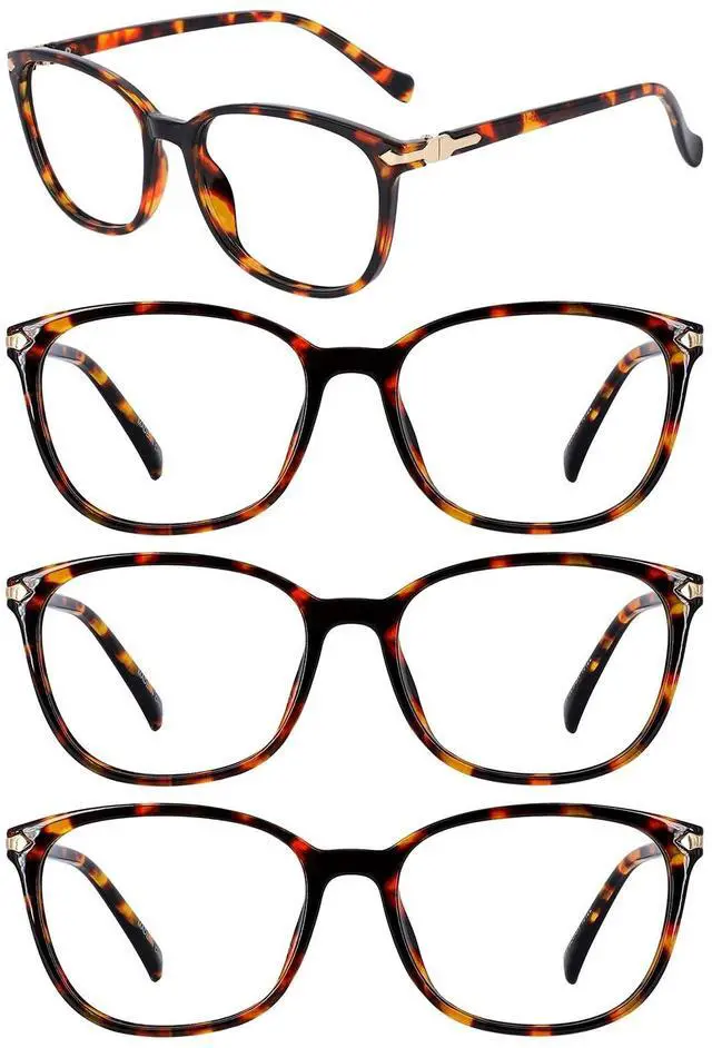 4 packs reading glasses 2.0 for women - WEMOOTANTS women's readers 2.00 features high definition lens in large designer frames, helping seeing close up super clearly. The valuable set of 4 pairs is convenient for keeping cheaters in different places so you always have a pair handy. ^^ Protect your eyes from blue rays - Our blue light reading glasses lens have advanced blue light blocking coating (No color tinted) to effectually filter out harmful blue lights and reduce discomfort and eyestrain when you browsing phone, tablet or pad for long time. ^^ Classic style with modern appeal - Large square readers lens in full rimmed retro leopard frame.