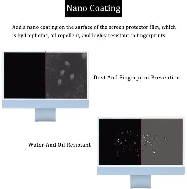 Reliable quality: Using good-quality PET material film and 6-layer anti glare technology, aimed at reducing glare and reflected light, high-definition transparent film ensures resolution and better alleviates glare and visual fatigue. ^^ Water And Oil Resistant, And