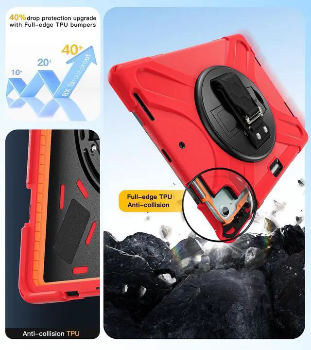 Models Pro 12.9 '': A2764, A2436, A2437, A2766/A2378, A2379, A2461, A2462/A2069, A2229, A2232, A2233/A1876, A2014, A1895, A1983. It is not compatible with other iPad generations. Please confirm your devices model number before purchasing to ensure proper fit. Confirm compatibility under Settings > General > Model ^^ [Heavy Duty, Full-Body Military-grade Protection]This case for ipad Air 13''/Pro 12.9 '' (2018 to 2022) features triple-layer construction and extra orange TPU cushioning strips, the outer silicone layer reinforces the dropproof performance of all four corners, plus there are 4x shockproof sponge pads on the bottom cover to prevent scratches to your tablet. Two types of front cover are included in the package. Provides the ultimate in protection and durability, safe for kids to use. ^^ [360Rotating Anti-Slip Hand Strap; Stand with One-Touch Retract Button]With the rotating system as well as kickstand and Silicone handle, it makes this multi-functional case that you can use in any scenario, such as commuting, office, study, watching videos, typing. In addition, the detachable and adjustable shoulder strap can help you carry it easily, and you can also hang it on your car seat to use your tablet.