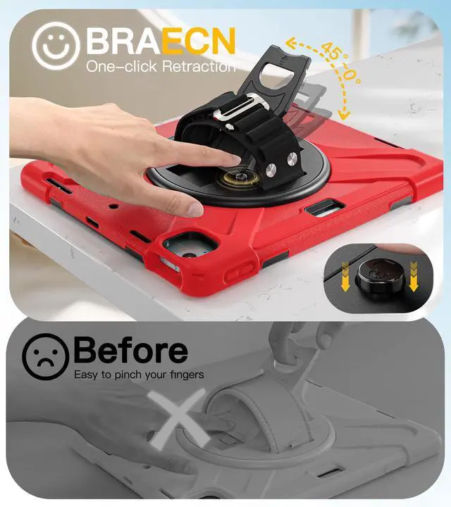 Front Covers: One with Screen Protector]This rugged case for iPad Air 13''/Pro 12.9 '' (2018 to 2022) prevents screen scratches. Comes with two front covers, one with screen protector the other without (front cover without screen protector has extra foam cushioning), which can be replaced according to your needs. ^^ [Precise Cutouts & Durability Test]Skeletonized power button position. With volume key protection, charging port protection, speaker protection for enhanced dust protection, can protect the internal components. Each button is easily accessible. Experimented to withstand 100+ simulated drops; Upgraded silicone hand strap has better anti-slip performance while being easy to clean.