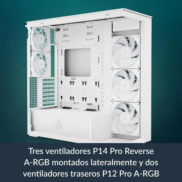 P14 Pro Reverse A-RGB: Three side-mounted fans with inverted airflow powerful for optimal airflow while showcasing the beautiful side of the fans. ^^ TWO 420