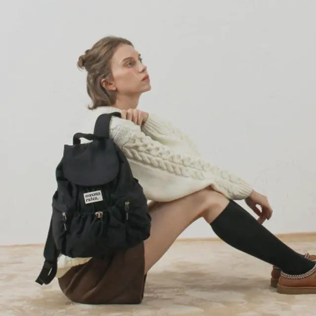 ^^ Flap & Drawstring Closure for Security Stylish string flap closure offers secure storage and adds a minimalist, trendy look for everyday wear.