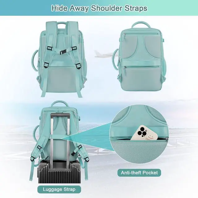 you an easy trip: designed with multiple carrying options like BACKPACK, SUITCASE and BRIEFCASE style. ShockproofThe laptop backpack has good thick cushions in both laptop compartment and main compartment to protect laptop and other items inside the backpack. Larger CapacityIt is suitable for 17.3 inch laptop. The carry on backpack can be extended to 40L, you can take it for 3-7 days travel. WaterproofThe overall backpack for travel is made of waterproof fabric to keep you from getting wet in rainy days. Wet BagThere is a dry and wet separation compartment inside, which is convenient for you to store wet clothes. Thickened and Wide HandleThe shoulder straps of the travel backpack can be hidden and make the backpack as a briefcase by using the thickened and wide top and side handles. THIS ITEM IS NOT INTENDED FOR USE BY CHILDREN 12 AND UNDER.