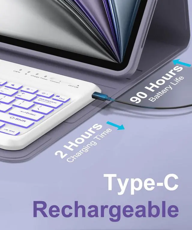 Keyboard FunctionallyMagnetically detachable super slim 7mm and light weight bluetooth keyboard with 10M range. And the book cover for ipad pro 12.9 keyboard with strong magnetic keyboard gives you a stable platform for typing that won't move easily. Rechargeable BatteryBuilt-in rechargeable battery for long keyboard life. For iPad pro 12.9 4th generation keyboard case ensures your device is always ready for action, thanks to its auto wake/sleep function. Precise CutoutsPrecise cutout allows full access to all ports, user interface, sensors, speakers, microphone and cameras. Multiple Viewing AnglesThis magic keyboard for iPad Air 13 2024 has 3 grooves to adjust the viewing angle as you like, make your tablet stand steadily.